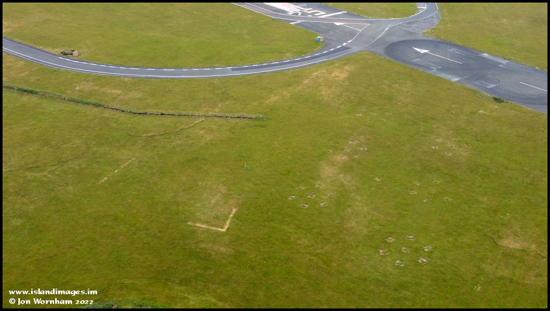 A closer look at the aircraft tie down blocks and boundary marker that pre dates the tarmac runway being constructed. Aircraft were not generally parked on the airfield, but on 'dispersals' located in the fields outside the boundary.