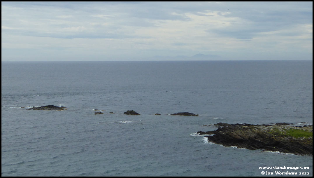 Looking across the 'Tail of Rock' to where the Mountains of Mourne in Northern Ireland are visible on the horizon.