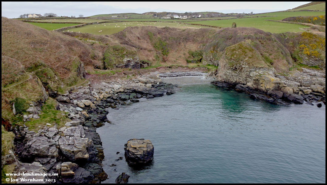 This little beach isn't named on my maps, but it would once have served local residents for beaching their fishing boats. The houses of Maughold village can be seen at the top of the picture.