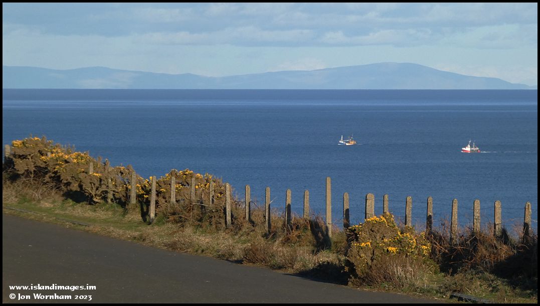 Back at ground level, with two local fishing boats heading back into harbour at Douglas, with the Cumbrian Mountains as a backdrop.