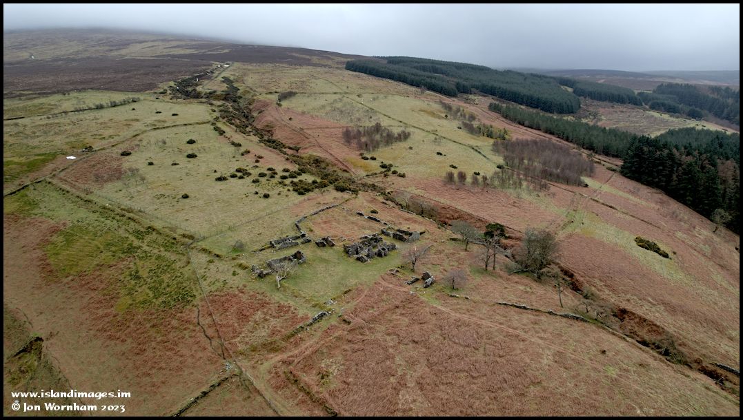 Ballaskella tholtan, high on the hillside above Sulby Glen. Normally Snaefell would be visible behind, but this afternoon the cloud is hiding most of the mountain.