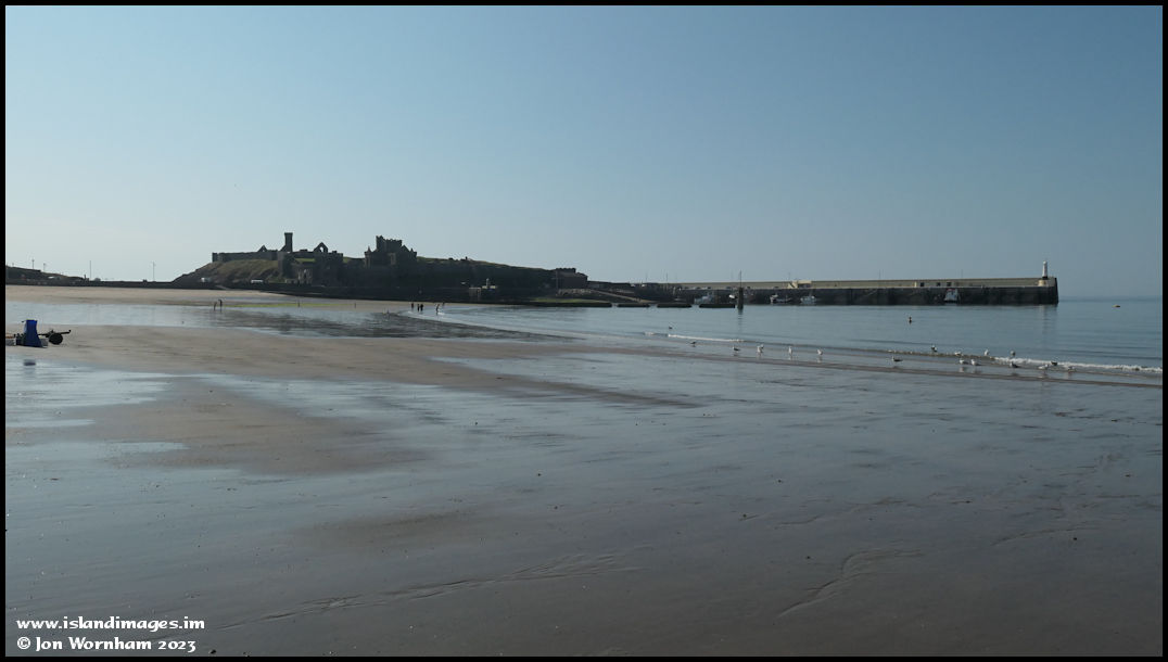 On the beach at low tide and looking towards the castle.