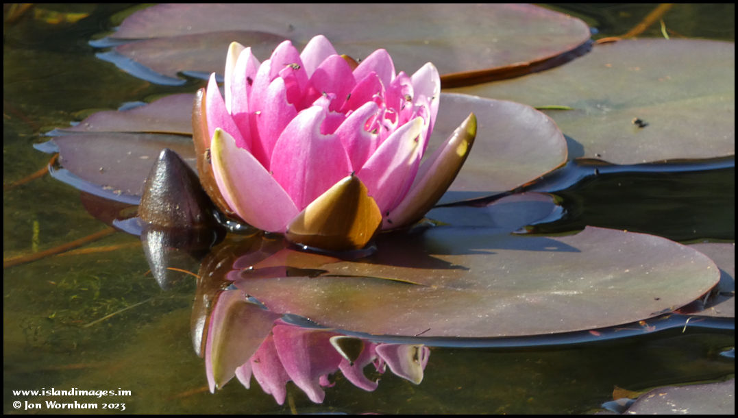 A waterlilly flowers on one of the ponds.