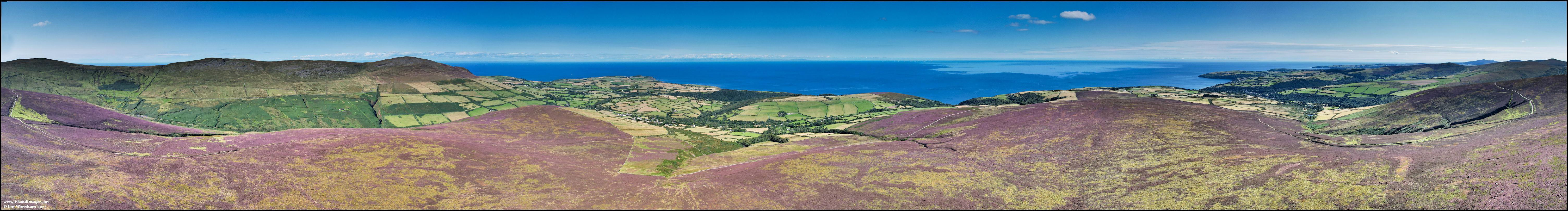 This final linear panorama is more or less over the centre of the ridge, looking over the upper Cornaa Valley initially, then past Maughold, before looking down Glion Ruy and Glen Agneash.