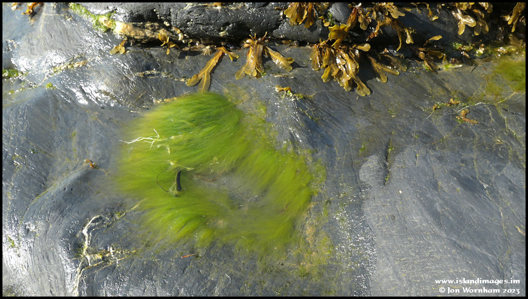 Another little rock pool with seaweed gently floating in it.