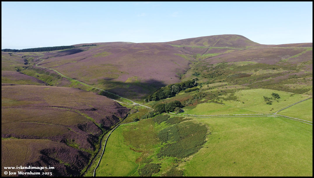 Turning the camera back towards Montpelier Plantation. I love the colour demarcation along the stream from the purple of the heather to the green fields on the right.