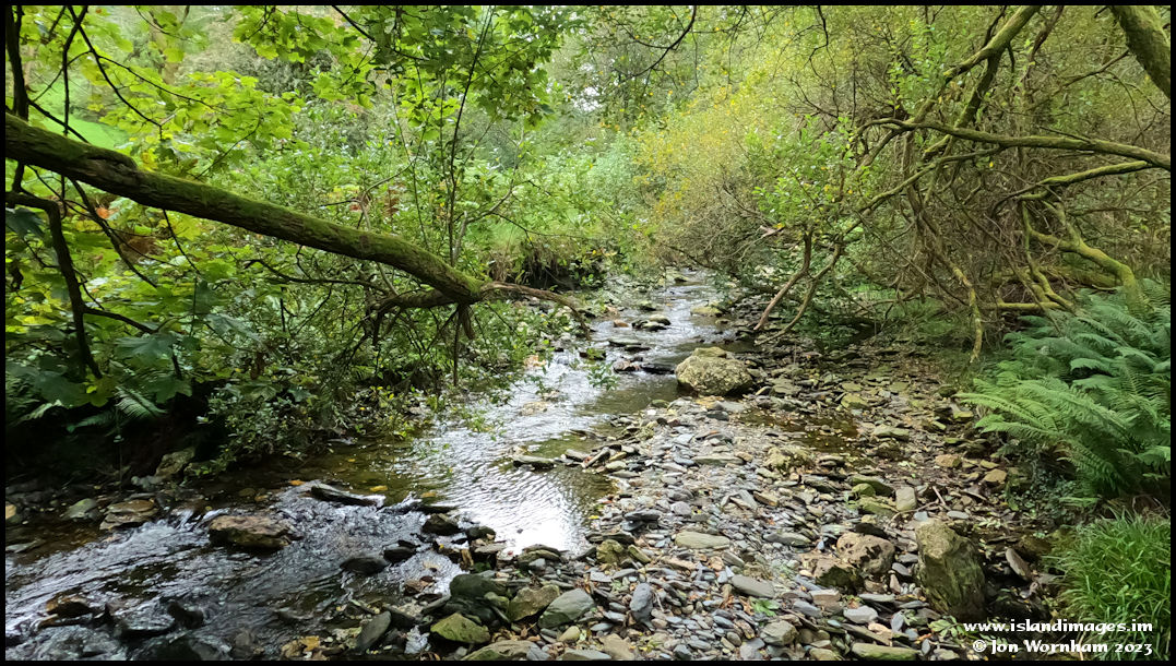 The track follows the river all the way up to the old mine workings, initially only just above river level but then climbing above it on the hillside.