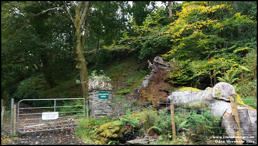 There are quite a few gates to open (and close!) on the way up, the gatepost on this one annoucing that you are entering the 'Glen Auldyn Estate'