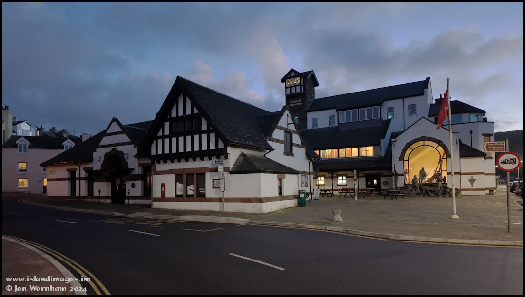 The House of Manannan. The nearest section on the left used to be Peel railway station.