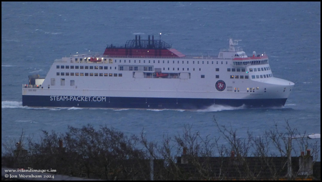 Looks like it's smoothing out a bit as 'Manxman' gets more shelter from the land. She's a great ship to travel on, much more spacious than the 'Ben' and seems to ride rough seas better.