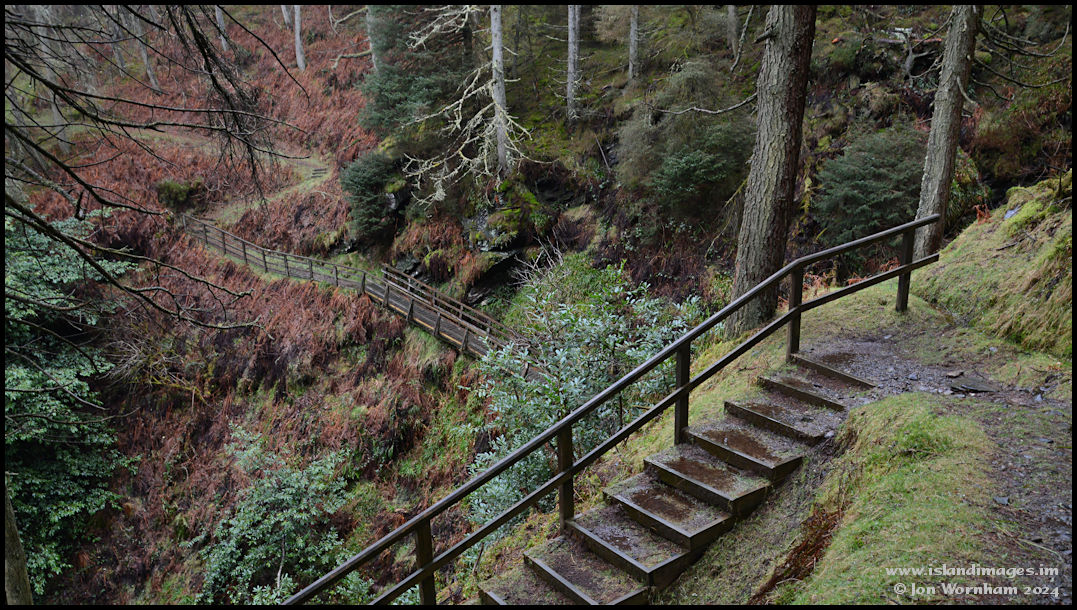 The waterfall is just down in the glen ahead, the other path you can see here is the upper one in the glen that eventually also takes you back down to Tholt-y-Will.
