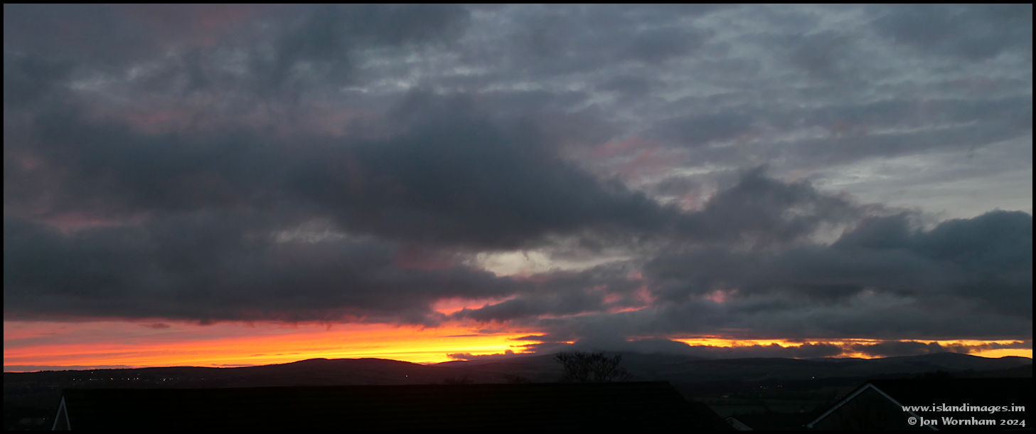 A band of gold stretches across the horizon after sunset on what had been a very dull and grey day.