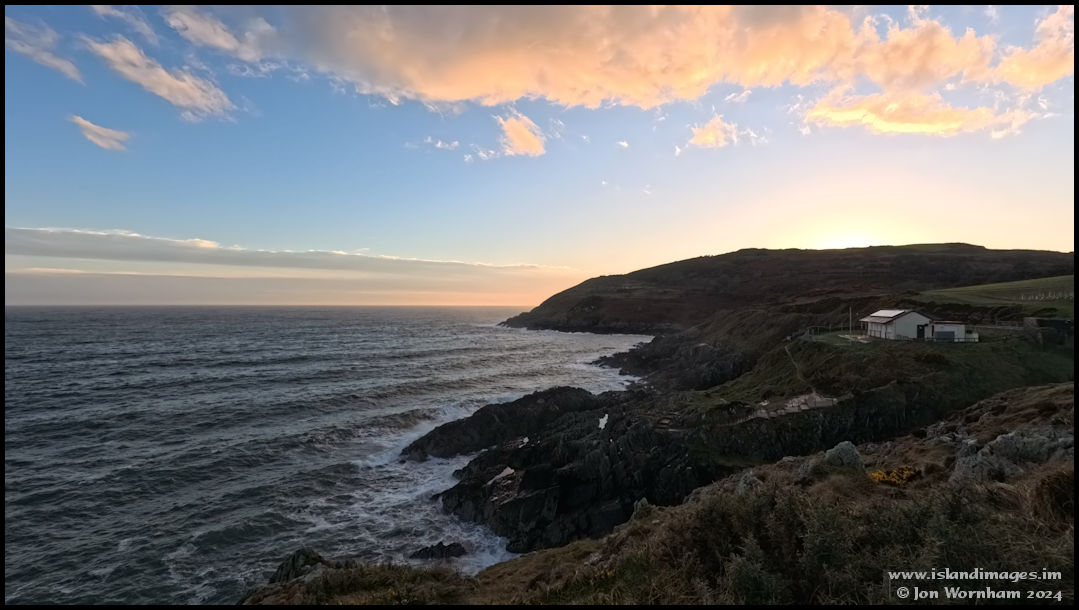 Looking back south past Sea Lion Rocks Station to where the sun has set behind Howstrake.