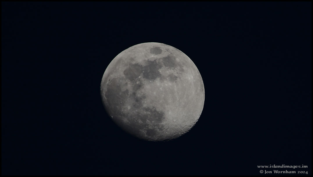 Switching over to the Nikon D7100 with 500mm Sigma zoom for this moonshot. The sky has darkened due to the high contrast with a very bright moon.