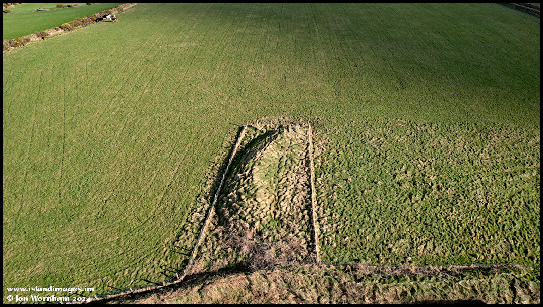 Carefully fenced off in this farm field, but really a bit disapointing, but I was lucky that a low sun angle highlighted the ancient earthwork.