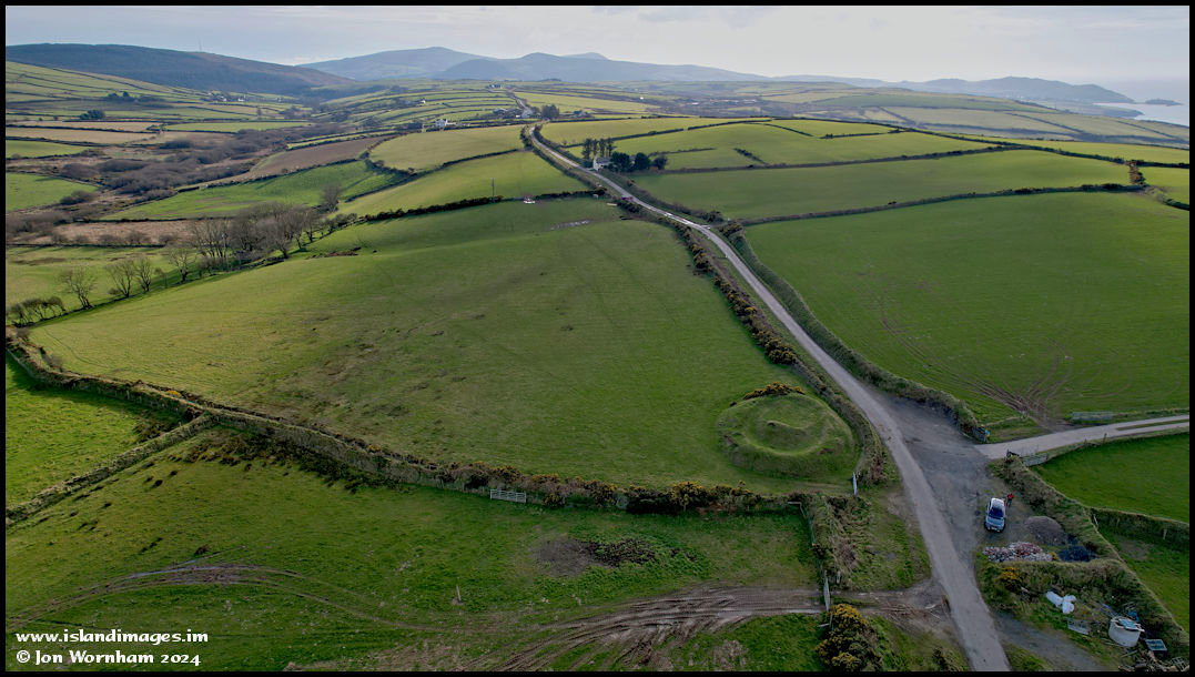 This is looking back south over Keeil Pharick towards Staarvey. Peel Hill and the Castle just manage to sneak into the picture at the top right.