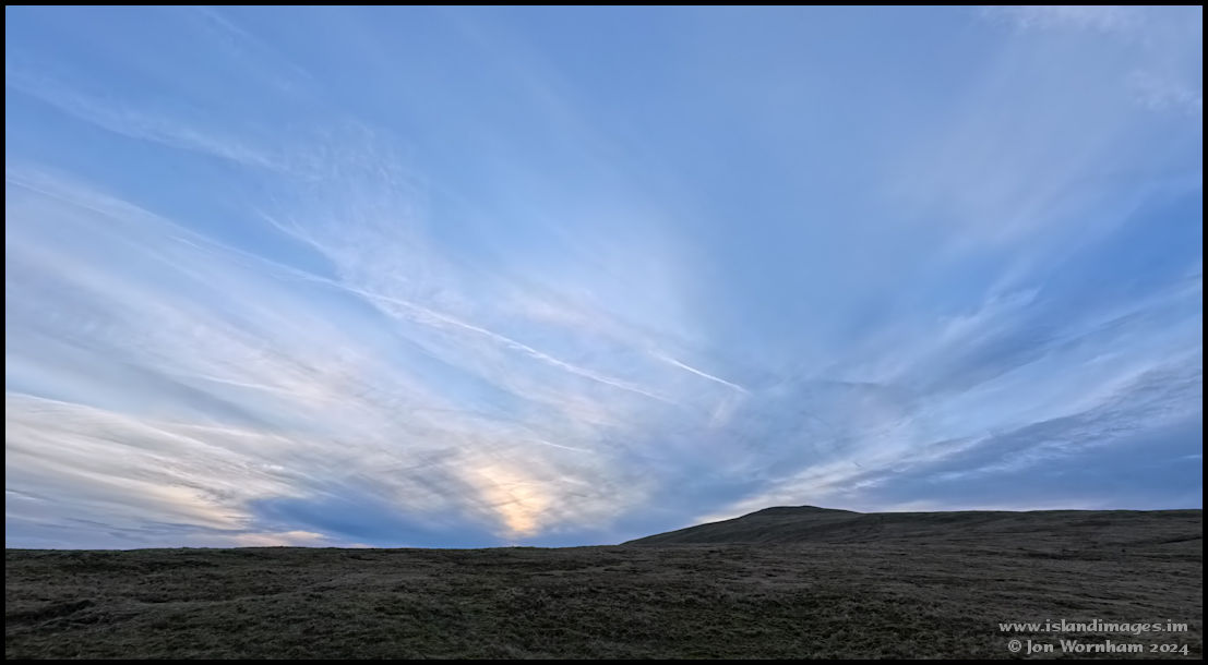 It's twenty past five and I was still on the way home when I stopped to take this picture of the sunset sky over Beinn-y-Phott.