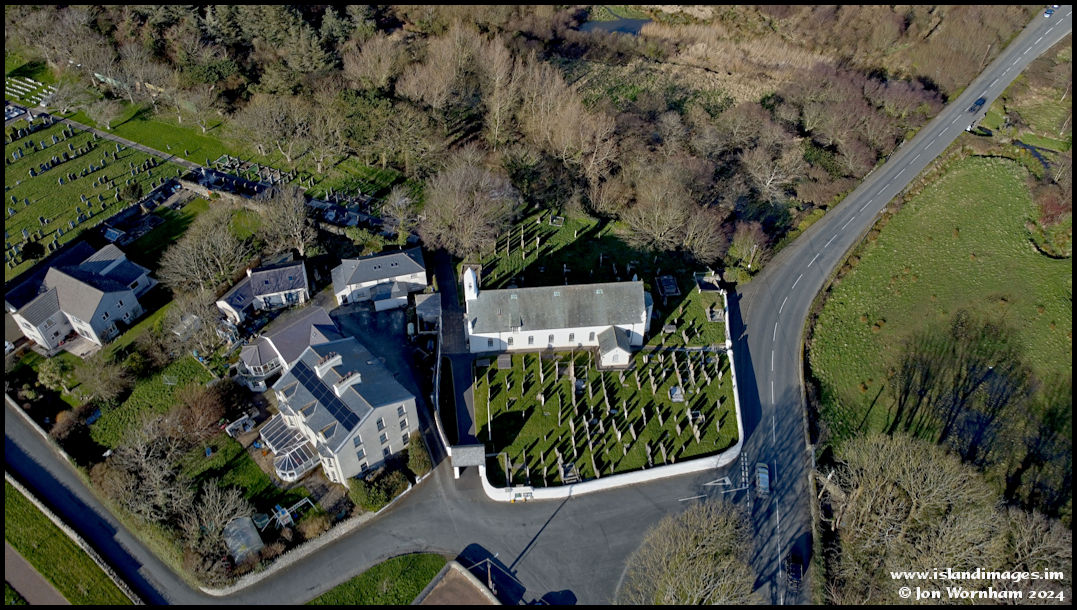 A semi vertical view of the church. The large house next to it was the former rectory, but is now a private residence.