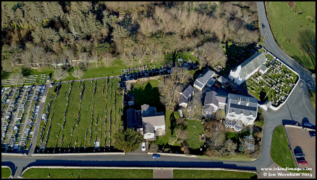 A final conventional aerial shot of the church, taking in most of the older graveyard sections. The extensive newer sections can be seen on the 360 degree panoramas that follow.