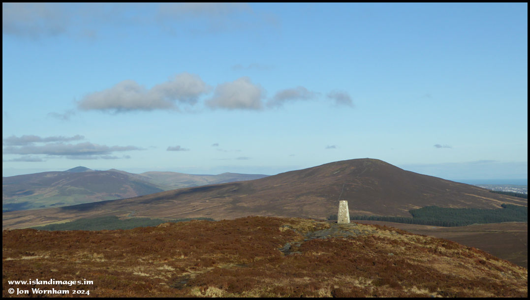 The Ordnance Survey triangulation pillar that's almost, but not quite at the summit of Cronk ny Arrey Laa. South Barrule behind. For those not in the know, these pillars were used for surveying early OS maps.