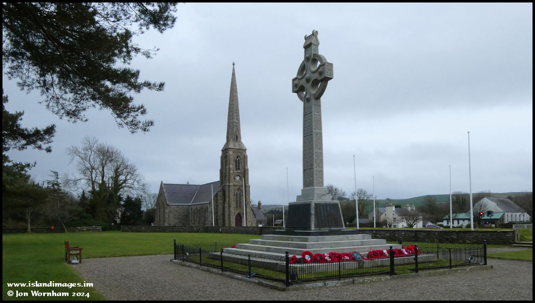 Back down at the Tynwald Field, the War Memorial and St John's Church.