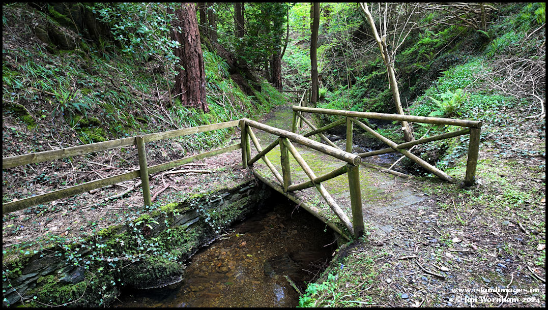 Having made my wish (no, I'll not tell!), I'm making my way down the glen over this rustic bridge. There used to be a path to the right here leading to one of the many caves, but it's quite overgrown now.