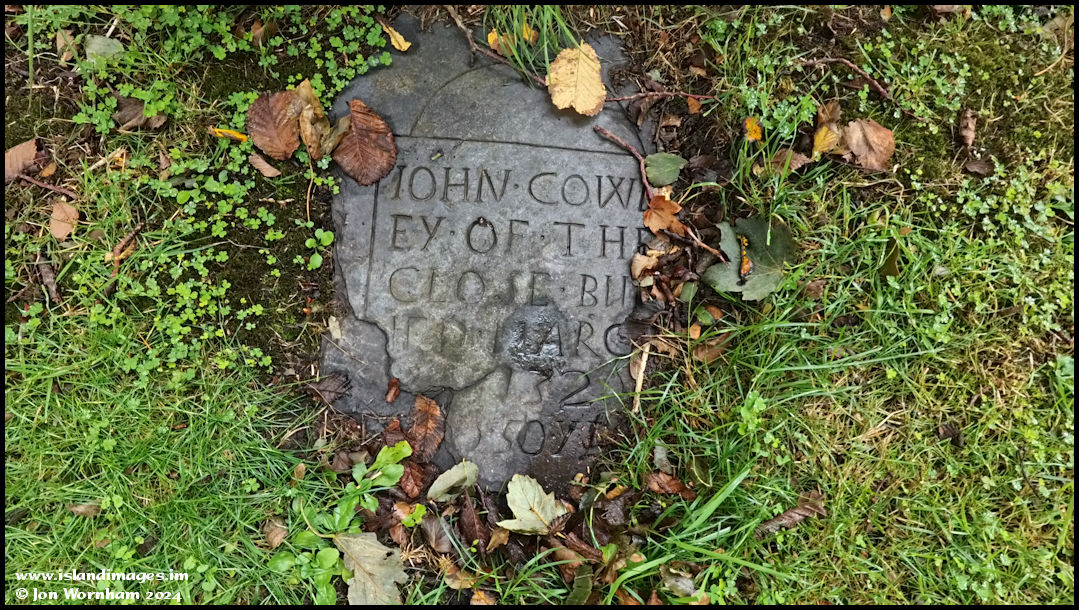 An old gravestone fragment almost buried in the grass, maybe from 1732?