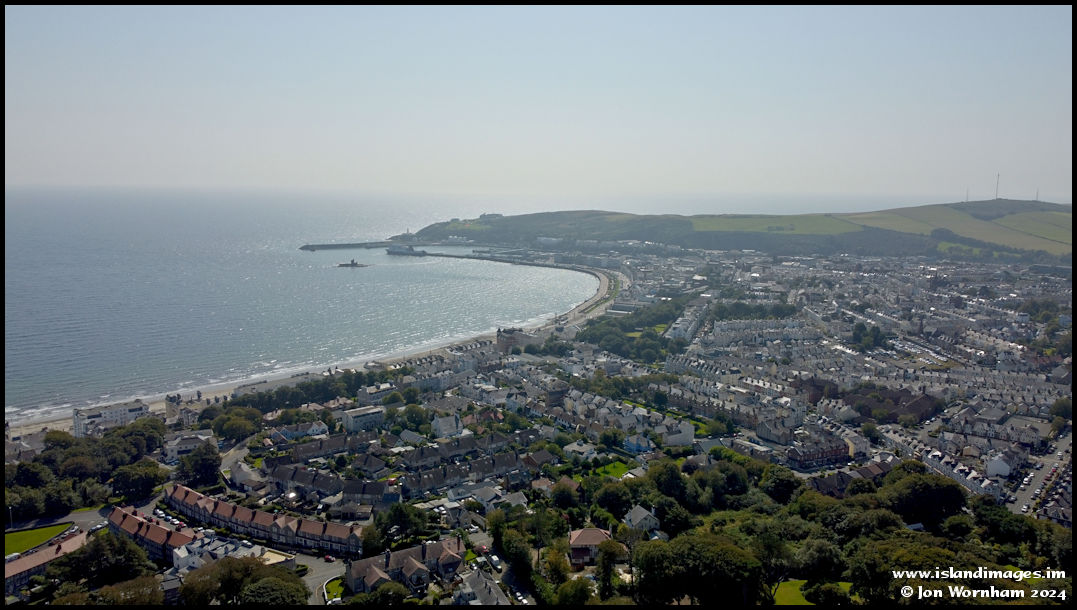 Turning the camera around and looking 'into sun' across the main part of Douglas and to the harbour and Head. It was a bit hazy but you can just see the 'Ben my Chree' on the Victoria Pier.