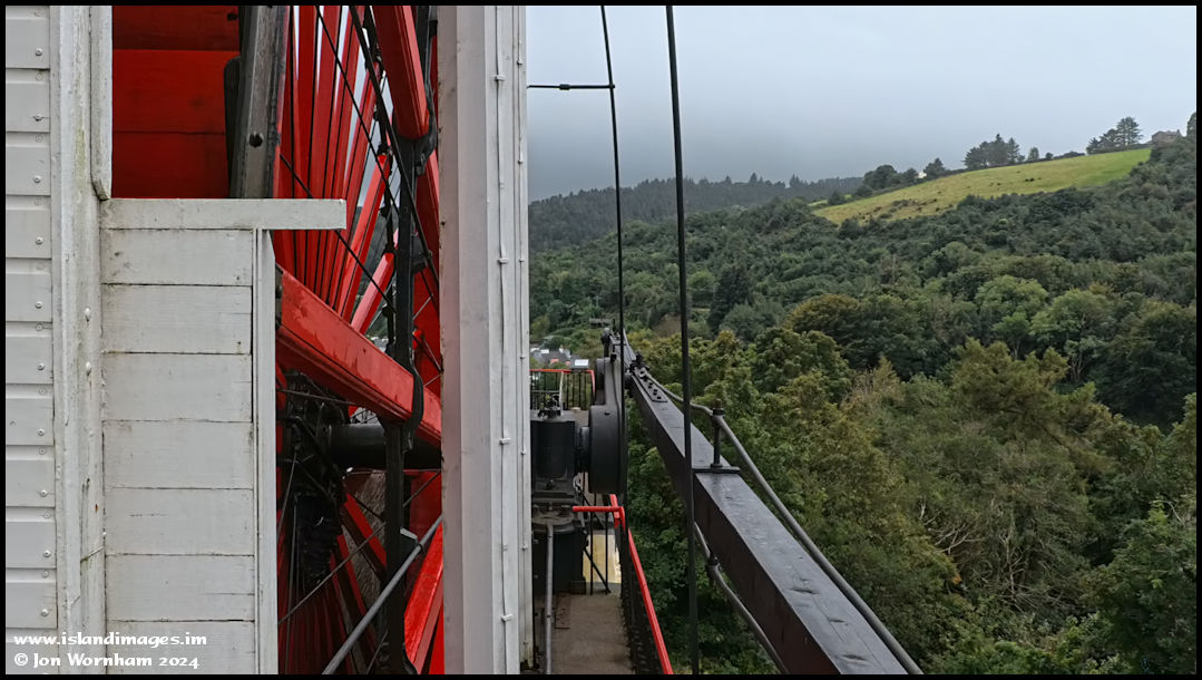 Looking along the side of the wheel where the crank powers the drive shaft that connects the wheel to the pump rockers higher up in the valley.