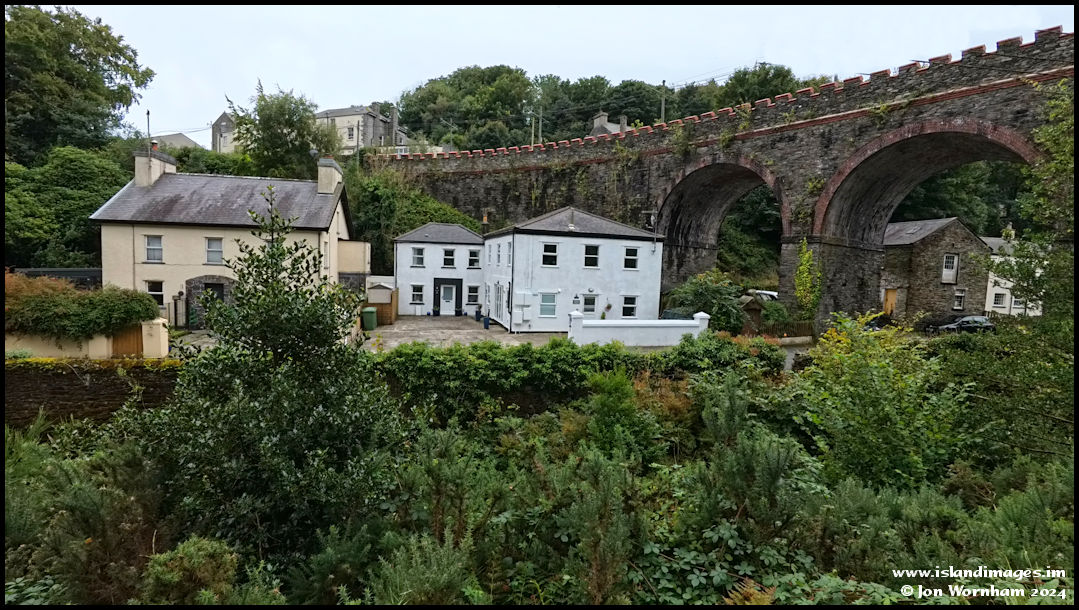 Looking up to the railway viaduct, which has a tight curve at its southern end.