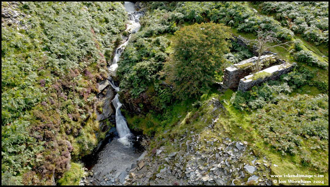 This waterfall is by the old mine, the structure on the right would once have housed a waterwheel used to power pumps to drain the mine.