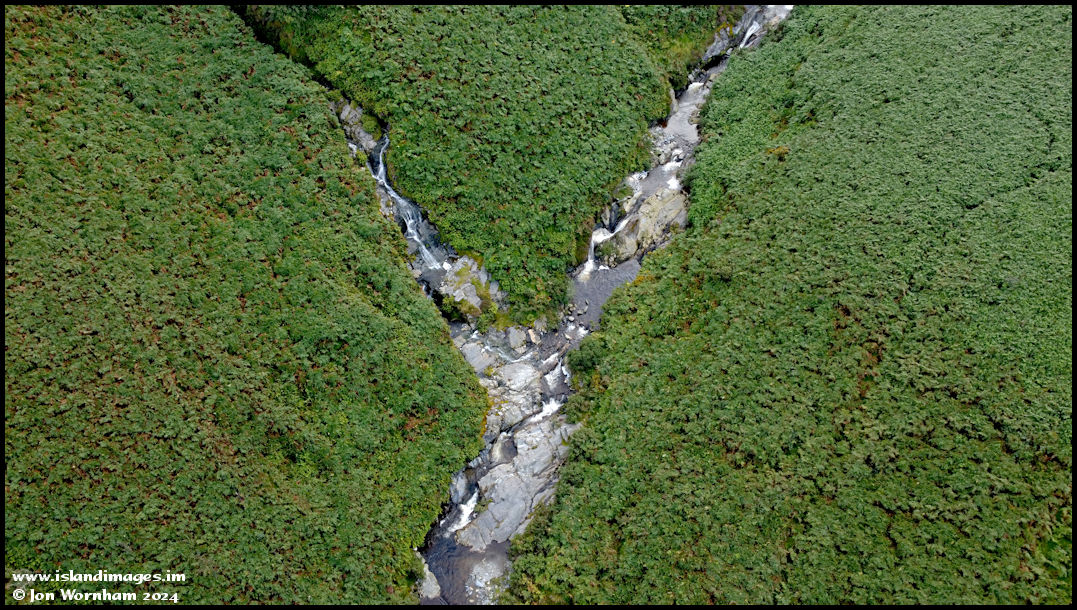 Streams merge, surrounded by a sea of bracken, which will soon be dying away for winter.