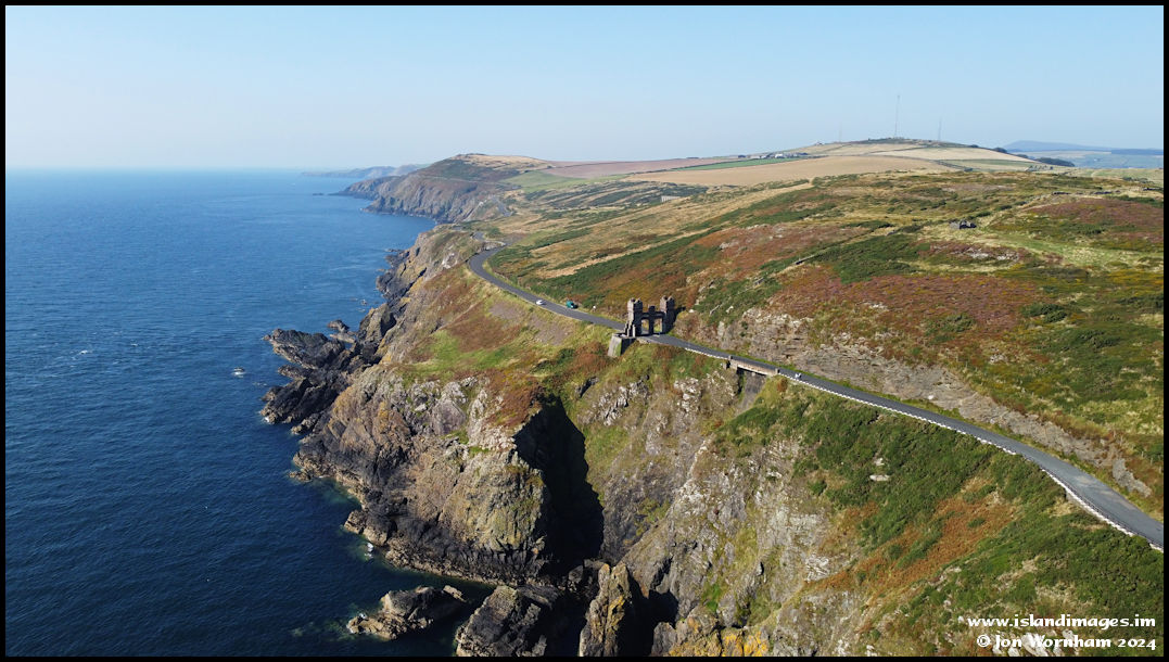 Looking south along the Marine Drive. The archway has three arches, one for pedestrians and two now for road traffic. Until 1939, the land side arch was used by the trams of the Douglas Southern Electric Tramway.