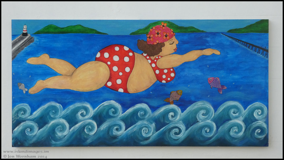 A much newer wall painting, of a lovely lady swimming in the sea between the harbour breakwater and Queen's Pier. This is the area that a misguided developer wanted to 'reclaim' to build apartments and a marina on.