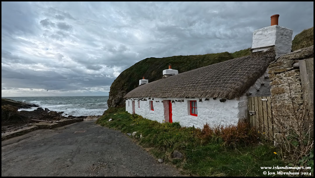 The thatched fishermen's cottages at Niarbyl. They appeared in the film 'Waking Ned'.