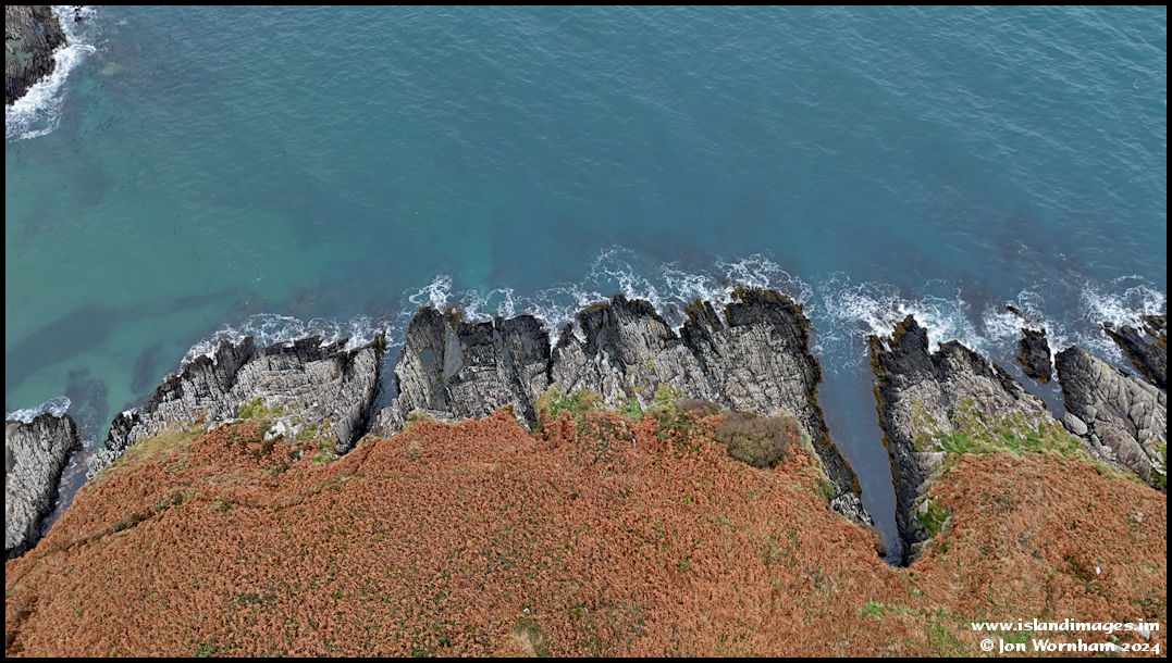 A vertical look down to gulleys in the rock below the old holiday camp.