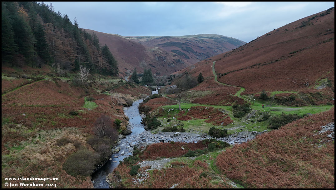 Turning the camera around to look downstream, past where the Block Eary valley branches off Suly Glen to the right.