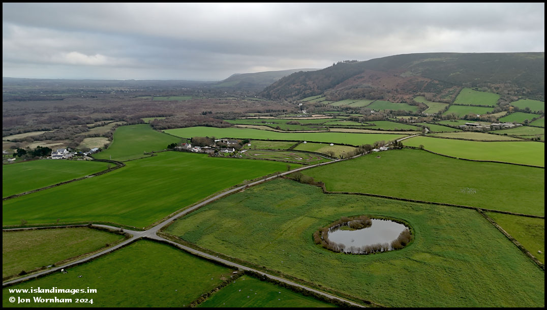 Just south of the Dollagh Mooar dub is another slightly smaller one. To the top left of the picture is the Ballaugh Curragh, a wetlands area once drained and farmed like this area, but now allowed to revert to its natural state.