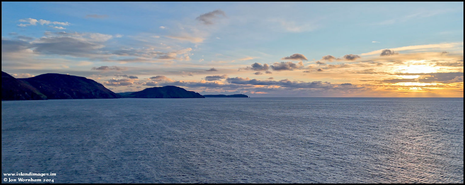 It's only ten minutes to four, but the sun will be setting shortly in this picture looking south towards Bradda and the Calf of Man.