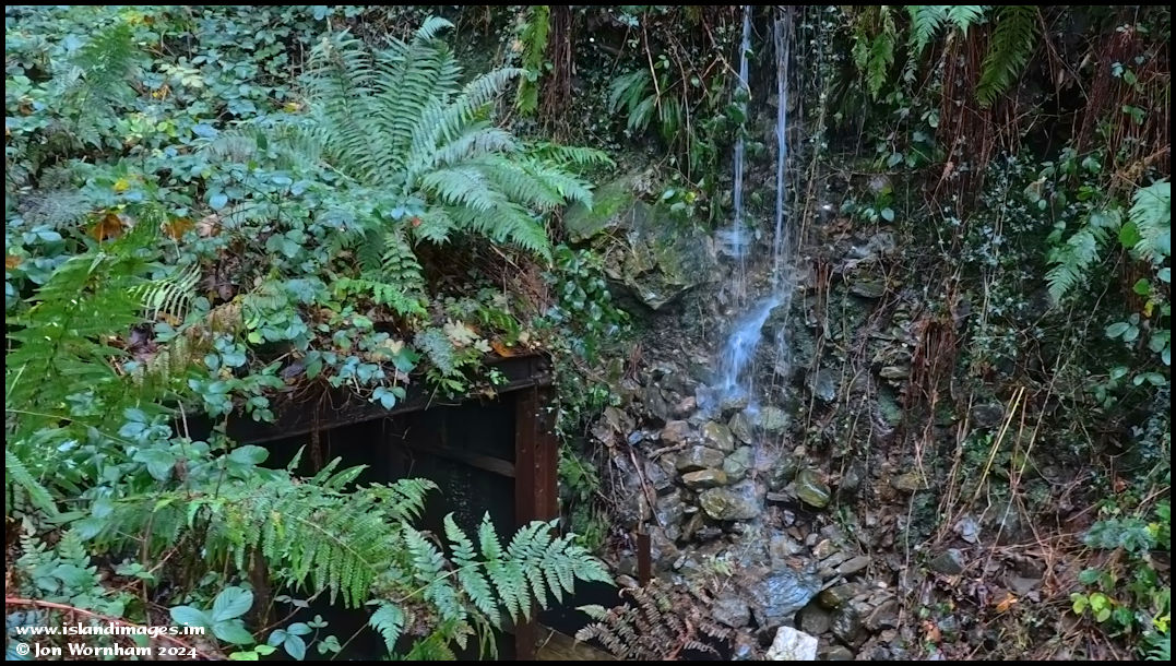 Just a couple of streams of water coming down here by the old main adit entrance to the Great Laxey Mine.