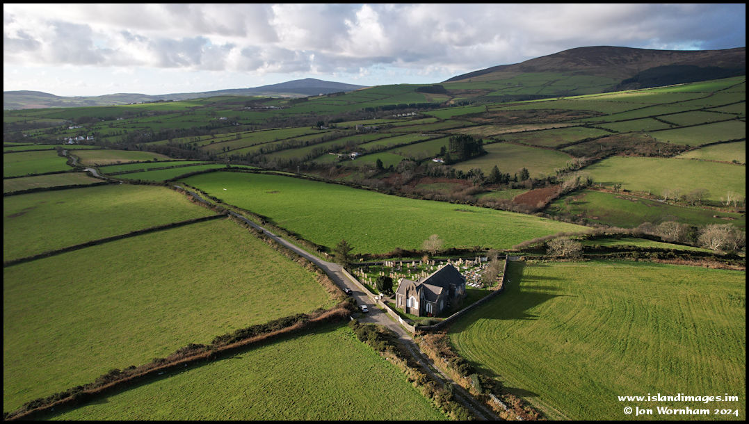 St Luke's Church, located on the ridge between the east and west Baldwin Valleys. The current church was completed in 1836, replacing an older one from the 1700s which iself was constructed on an ancient keeil site.