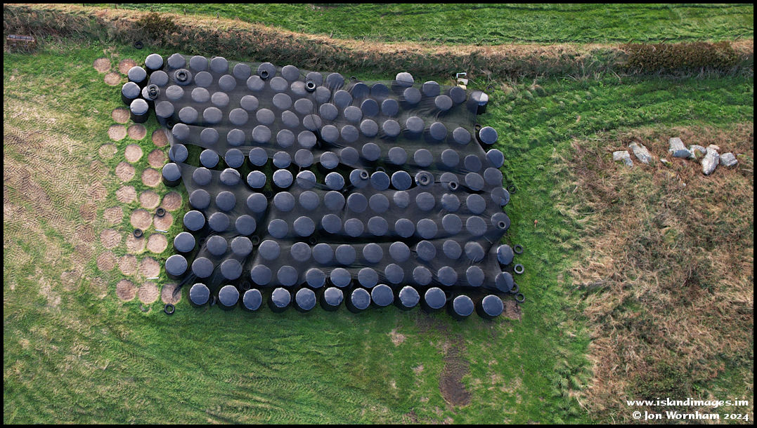 I quite like the patterns made by the farmer's hay bales here, including the marks where some have been removed to feed the animals.