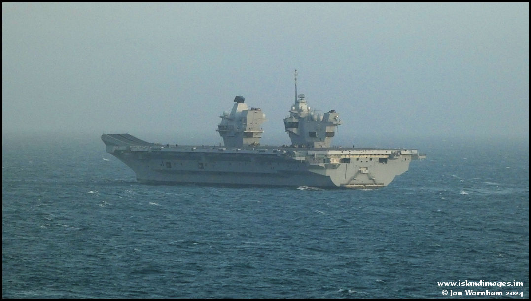 After one slow pass the turned away to starboard and I was hoping that she would then turn back for another pass before setting course for the River Mersey. No aircraft on the flight deck and I'm not sure she even has any embarked at the moment.