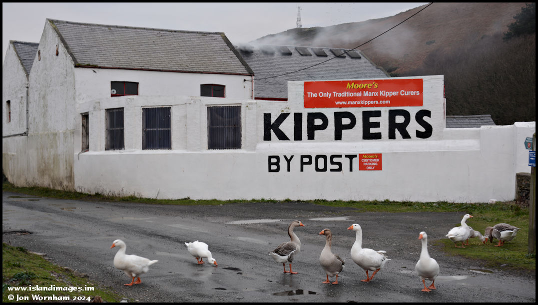 Moore's Kippers, the last traditional smokery on the island and unfortunately now closed. On the 7th December 2015 they were very much in business as a gaggle of geese hung around outside!