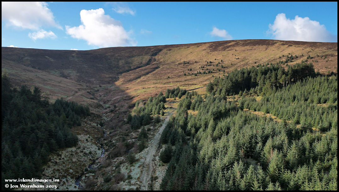 Moving to a secon flying location further up the valley, this is looking up the Colden River valley to the glacial cirque, with frost still covering the ground in the shadow of the hillside, even at the middle of the day.