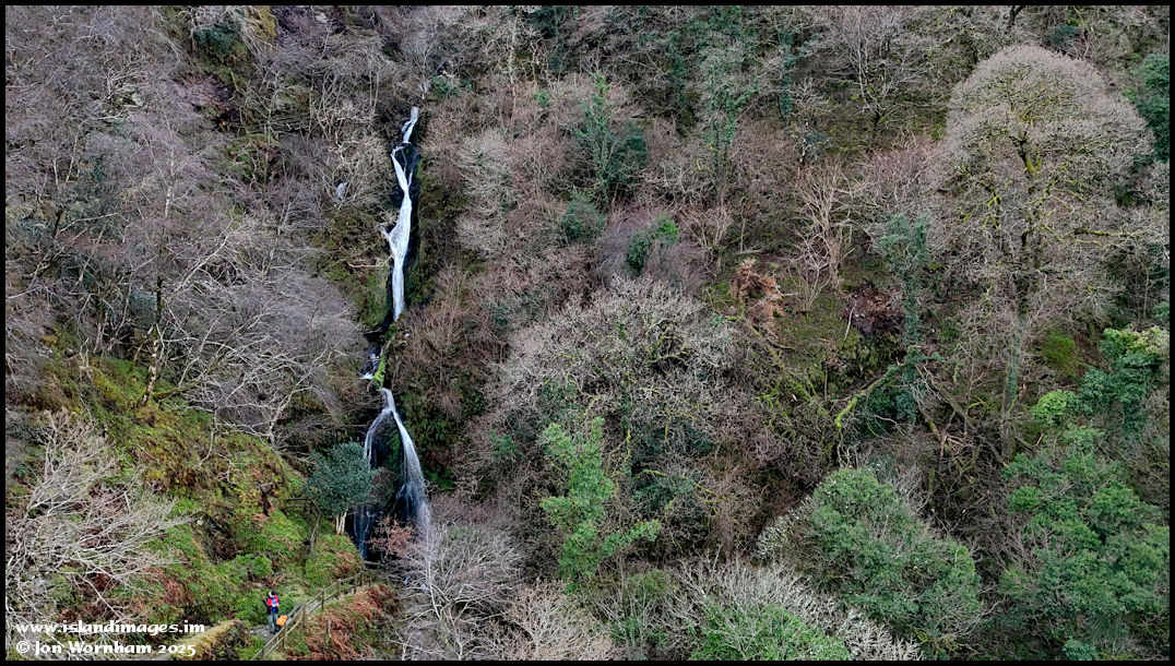 Even with the drone it can be difficult finding the right angle to capture the whole waterfall from. Drone pilot lower left for scale!