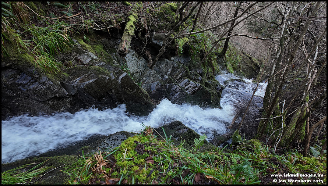 I''ve rejoined the lower path now to walk down to the bottom of the waterfall, but this is the very top section, where the stream abruptly tumbles over rocks before falling over 130 ft in two sections.