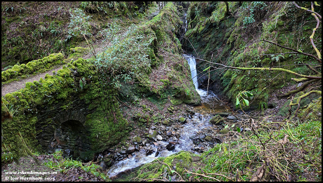Just below the big waterfall is this smaller one, befor the stream turns around to cross under the footpath at this moss covered stone bridge.