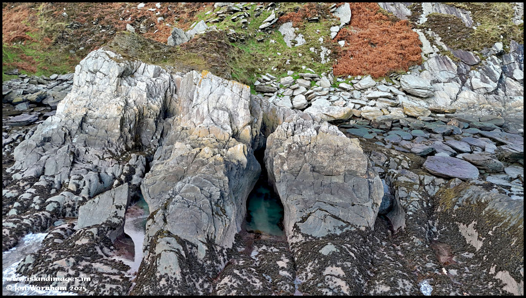 Just to the north of Dhoon Beach are these rocks, that contain a fascinating sea cave. I don't have time to visit today on foot, so I'm using the drone!