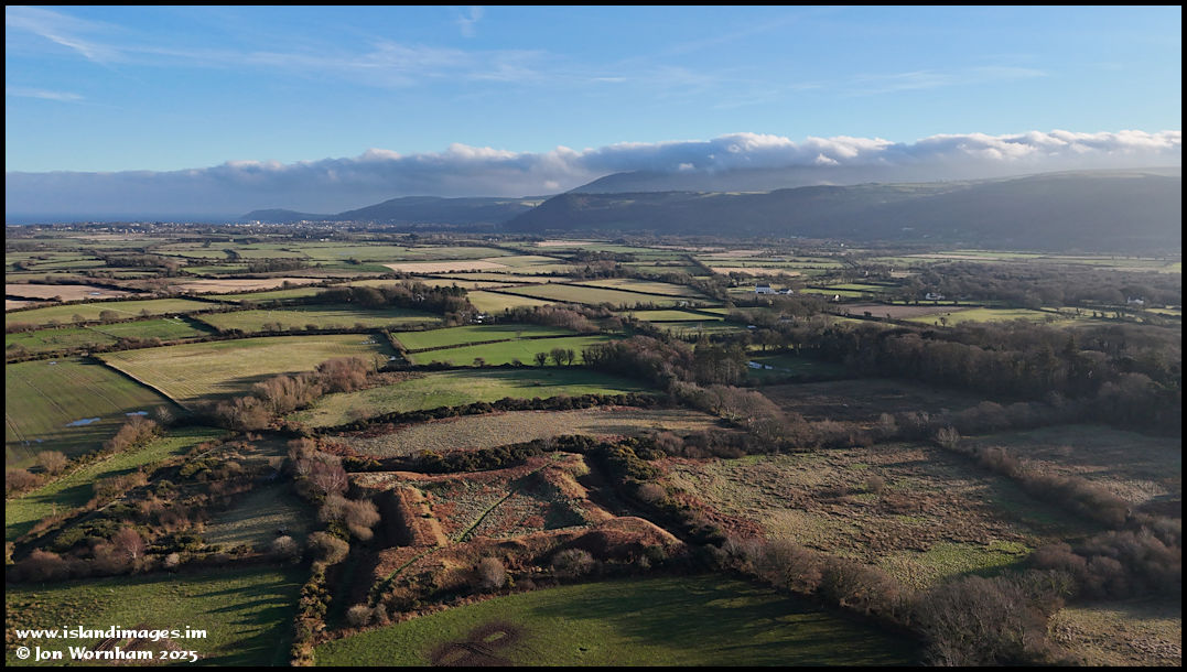 Climbing up higher, with Ramsey visible in the distance. The amazing thing about the fort is that it seems to have been constructed in the middle of farmland, there are no traces of any former road access.